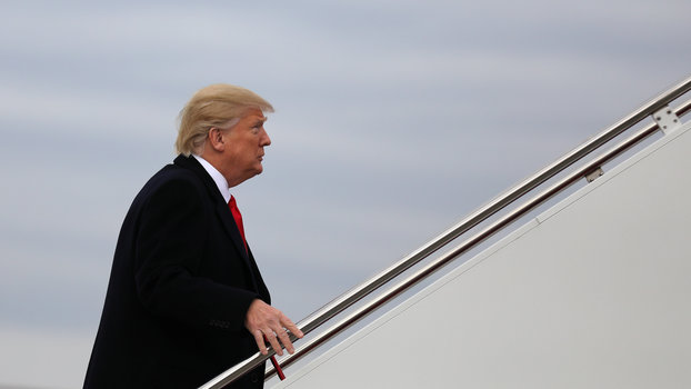 U.S. President Donald Trump boards Air Force One for travel to Palm Beach, Florida from Joint Base Andrews