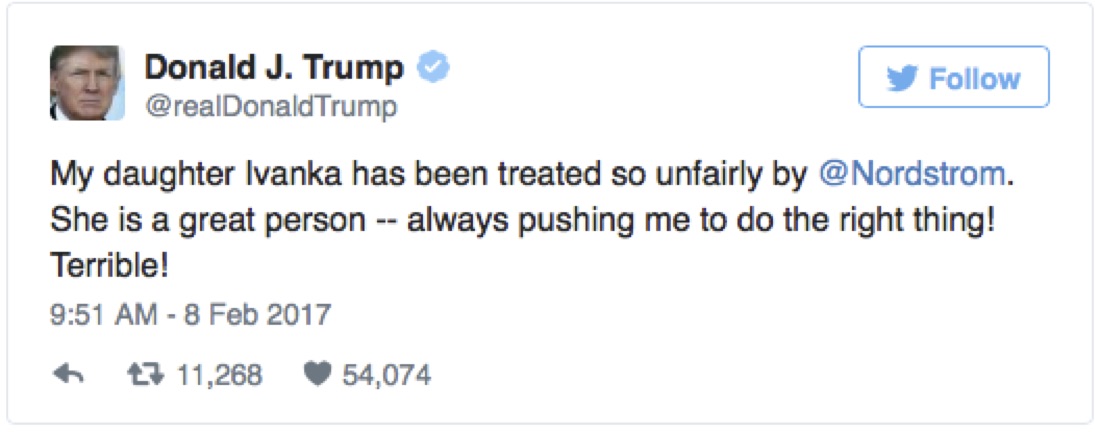 Trump Uses Bully Pulpit to Fiercely Defend His Daughter’s Business Interests