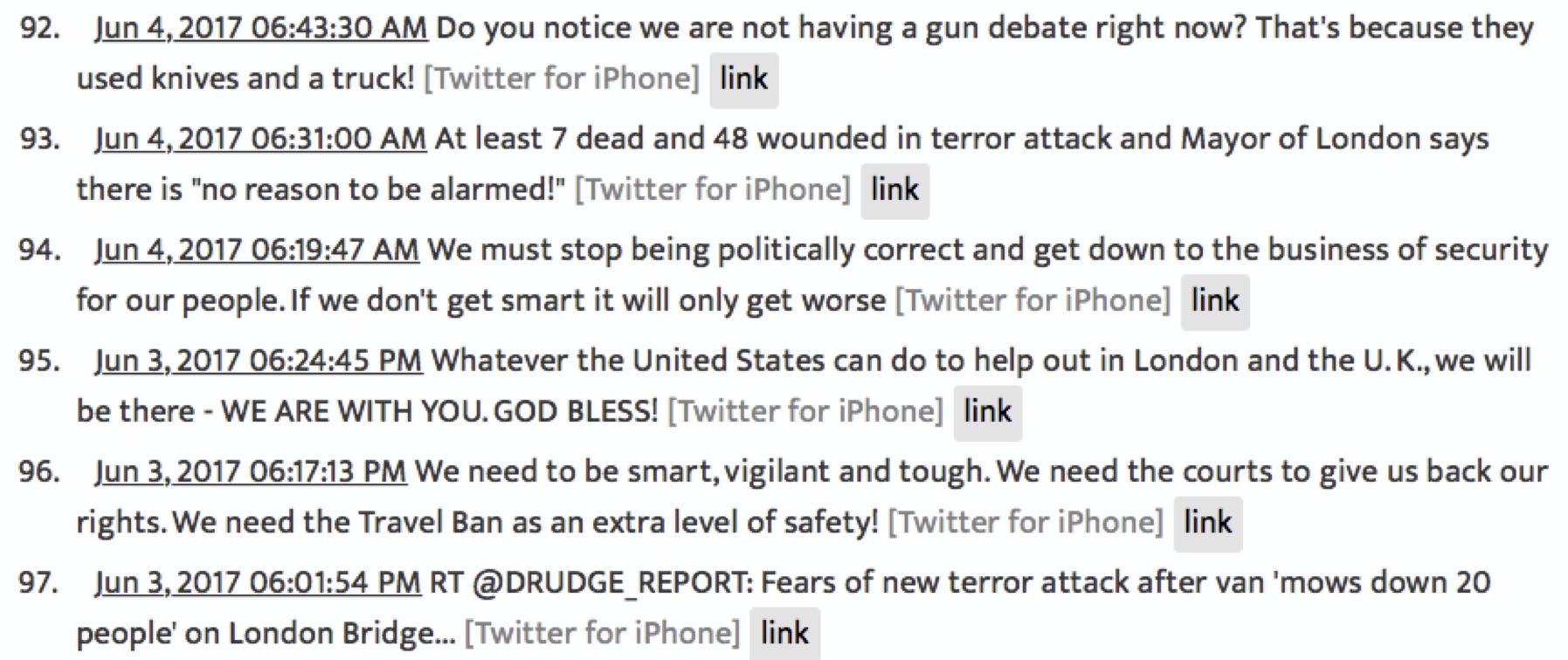 Trump’s London Attack Twit Explosion June 3-4, 2017