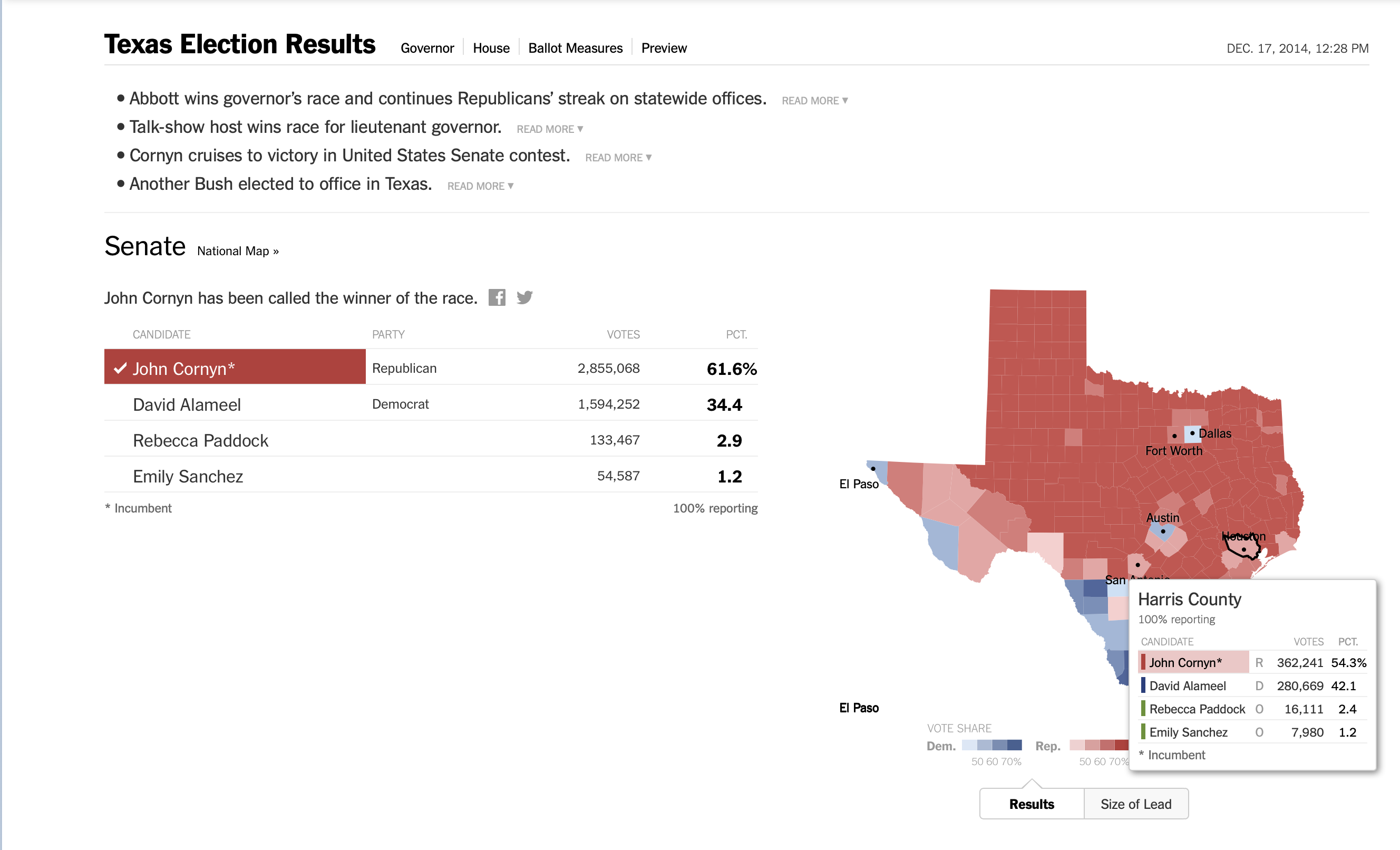 Texas Senate 2014 NYT