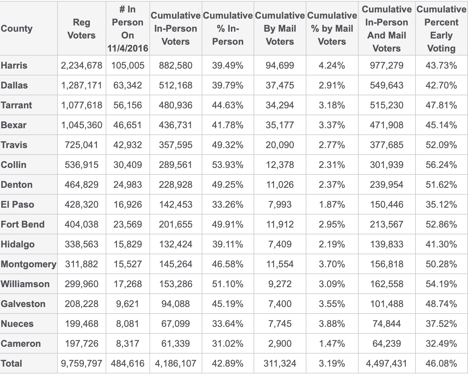Texas 2016 Early Vote Counts Texas.gov 11